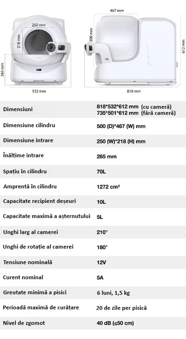 Mai mult, cu monitorizarea prin aplicație mobilă, poți vedea exact când și cum își folosește pisica toaleta. Primești notificări în timp real, accesezi statistici despre comportamentul ei și ai control total, oriunde te-ai afla. Este ca și cum ai fi mereu acolo, fără să fii efectiv acolo.